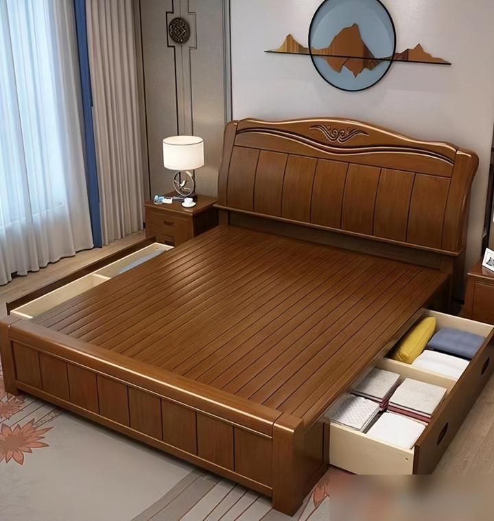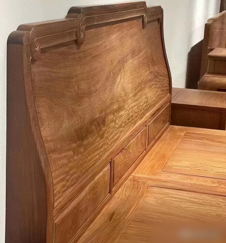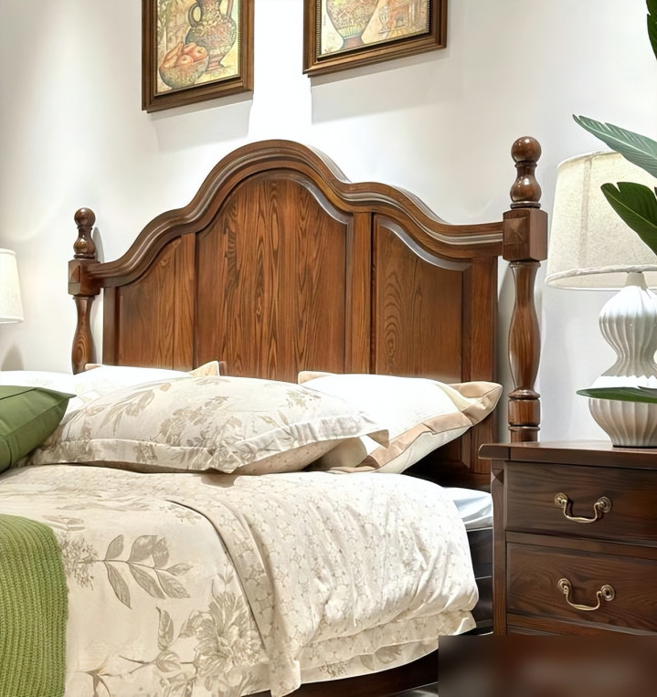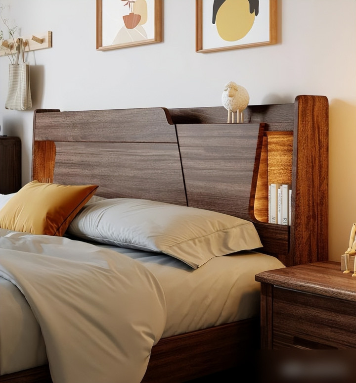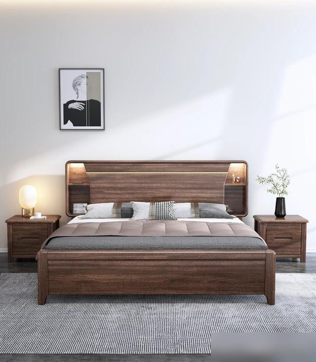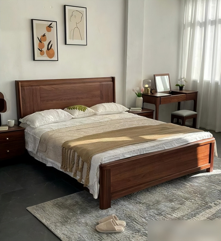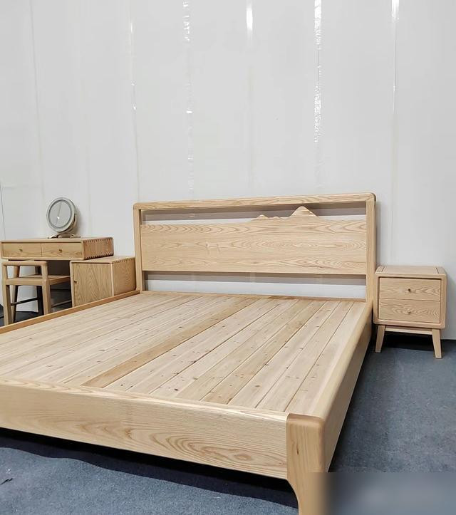 要说实木床最戳人的,首先是“好看得有温度”。现在年轻人装修都爱“原木风”“新中式”,实木床的纹理是天然的“氛围感神器”——樱桃木会慢慢氧化成琥珀色,像给床“镀了层时光的膜”;白橡木的直纹清清爽爽,配北欧风的棉麻床单,瞬间像把“森林”搬回了家。不像那种板式床,贴皮的纹理千篇一律,看久了就觉得“假”,是不是很多人都有“买了板式床后悔没选实木”的经历?