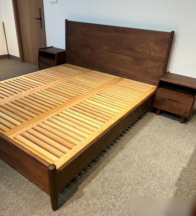 不过选实木床也不是“越贵越好”。比如材质,黑胡桃木是贵,但性价比不高,普通家庭选樱桃木、白橡木就够了,纹理好看还耐用;松木虽然便宜,但结疤多还有松油味,尽量别选。床板要选宽的——排骨架宽度至少7厘米,厚度2厘米以上,间隙小一点,不然床垫容易陷下去;床头要选“微仰”的,角度略大于90度,靠起来肩膀不酸,别选那种垂直的,跟“靠墙”似的难受。